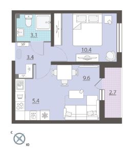 Жилая площадь 20 м2, кухня 5.4 м2, чистовая отделка. Раздельных санузлов - нет, балконов - нет, лоджий - 1.