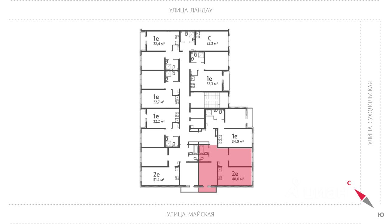 Квартира располагается на 4 этаже 8-этажного дома в ЖК Мичуринский.