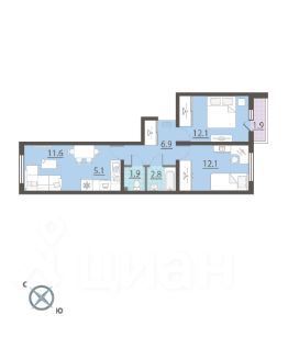 Жилая площадь 35.8 м2, кухня 5.1 м2, чистовая отделка. Раздельных санузлов - нет, балконов - нет, лоджий - 1.