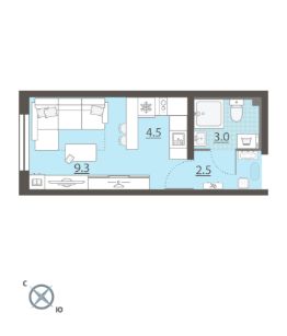 Жилая площадь 9.3 м2, кухня 4.5 м2, чистовая отделка. Раздельных санузлов - нет, балконов - нет, лоджий - нет.