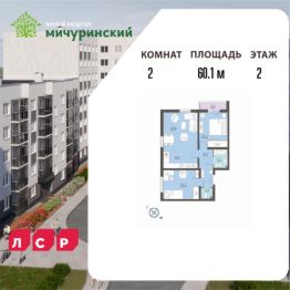 Квартира располагается на 2 этаже 8-этажного дома в ЖК Мичуринский.