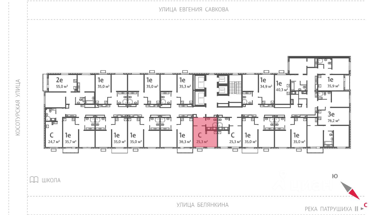 Квартира располагается на 16 этаже 24-этажного дома в ЖК Меридиан.