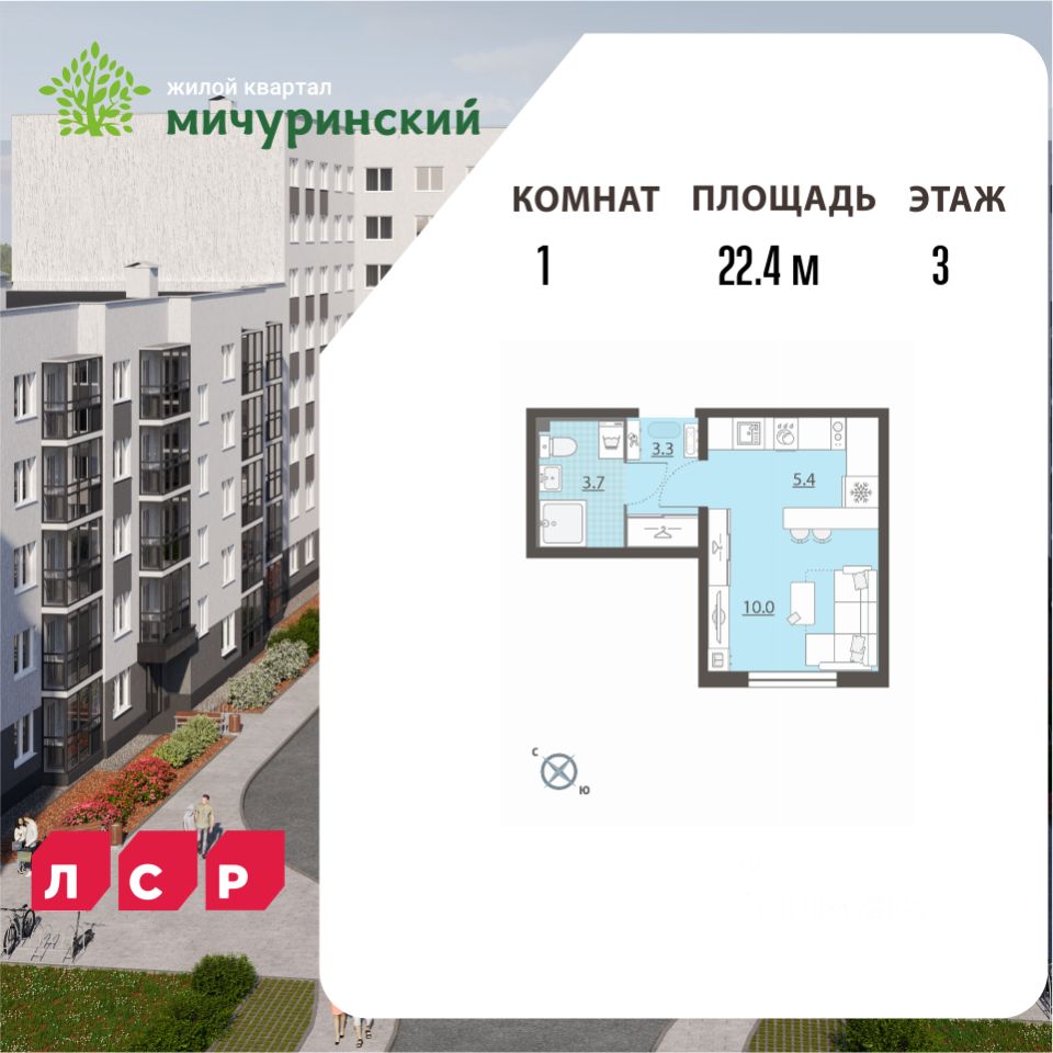 Квартира располагается на 3 этаже 8-этажного дома в ЖК Мичуринский.