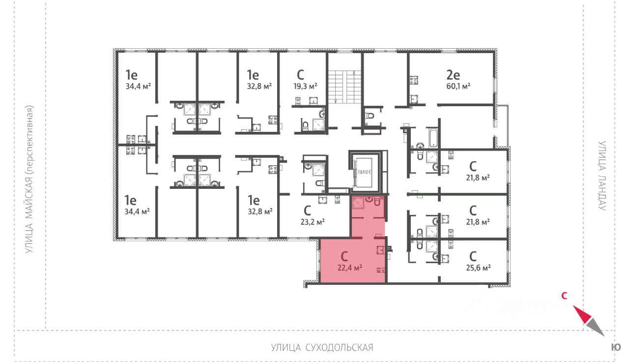 Жилая площадь 10 м2, кухня 5.4 м2, чистовая отделка. Раздельных санузлов - нет, балконов - нет, лоджий - нет.