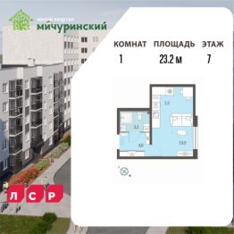 Квартира располагается на 7 этаже 8-этажного дома в ЖК Мичуринский.