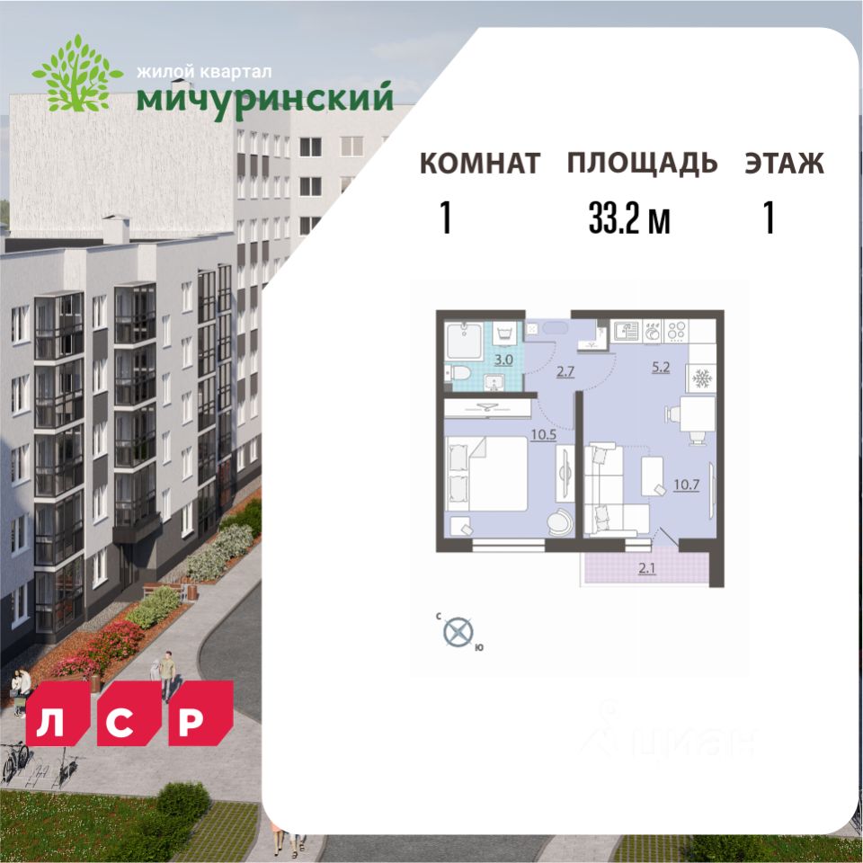 Квартира располагается на 1 этаже 8-этажного дома в ЖК Мичуринский.