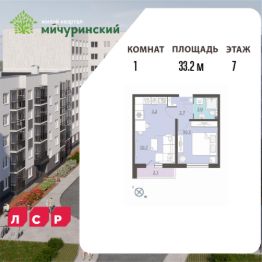 Квартира располагается на 7 этаже 8-этажного дома в ЖК Мичуринский.