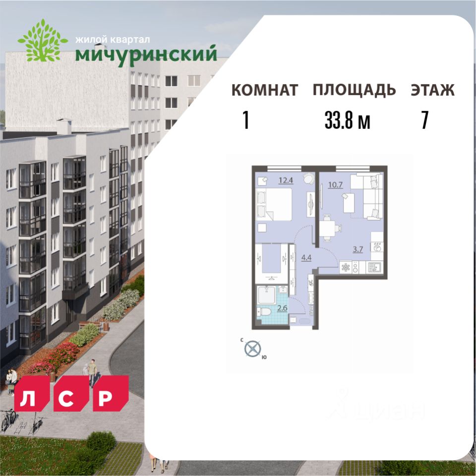 Квартира располагается на 7 этаже 8-этажного дома в ЖК Мичуринский.