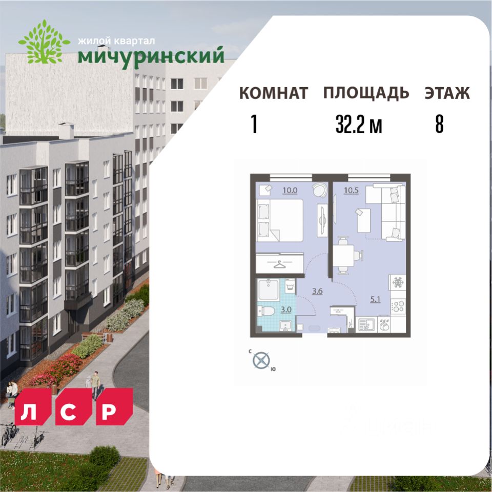Квартира располагается на 8 этаже 8-этажного дома в ЖК Мичуринский.