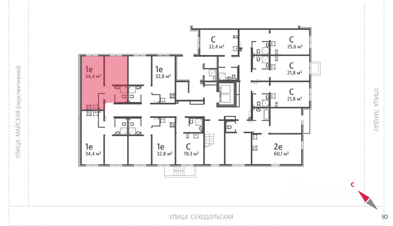 Жилая площадь 22.2 м2, кухня 5.2 м2, чистовая отделка. Раздельных санузлов - нет, балконов - нет, лоджий - нет.