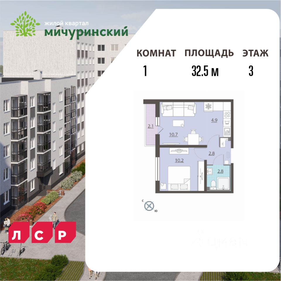 Квартира располагается на 3 этаже 8-этажного дома в ЖК Мичуринский.