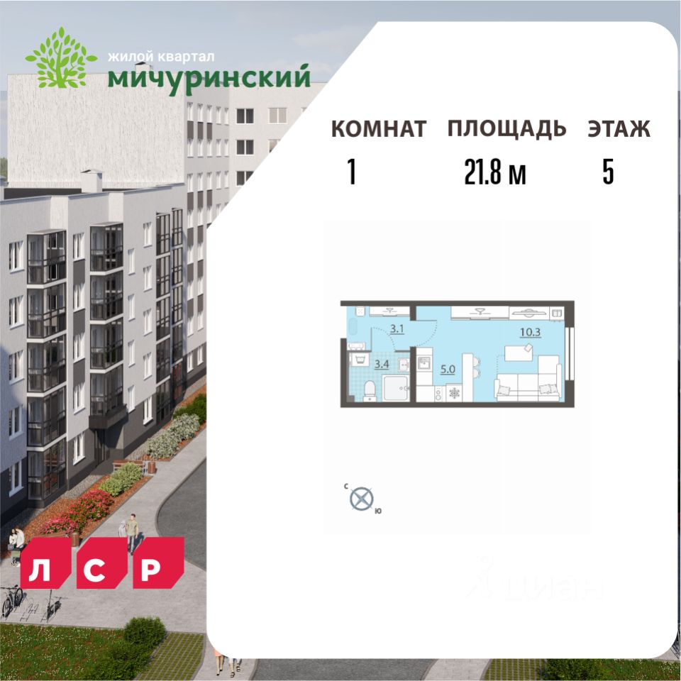 Квартира располагается на 5 этаже 8-этажного дома в ЖК Мичуринский.