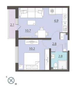 Жилая площадь 20.9 м2, кухня 4.9 м2, чистовая отделка. Раздельных санузлов - нет, балконов - нет, лоджий - 1.