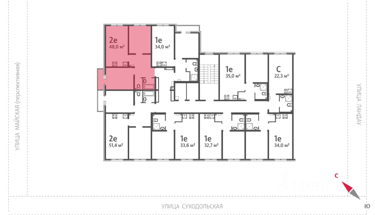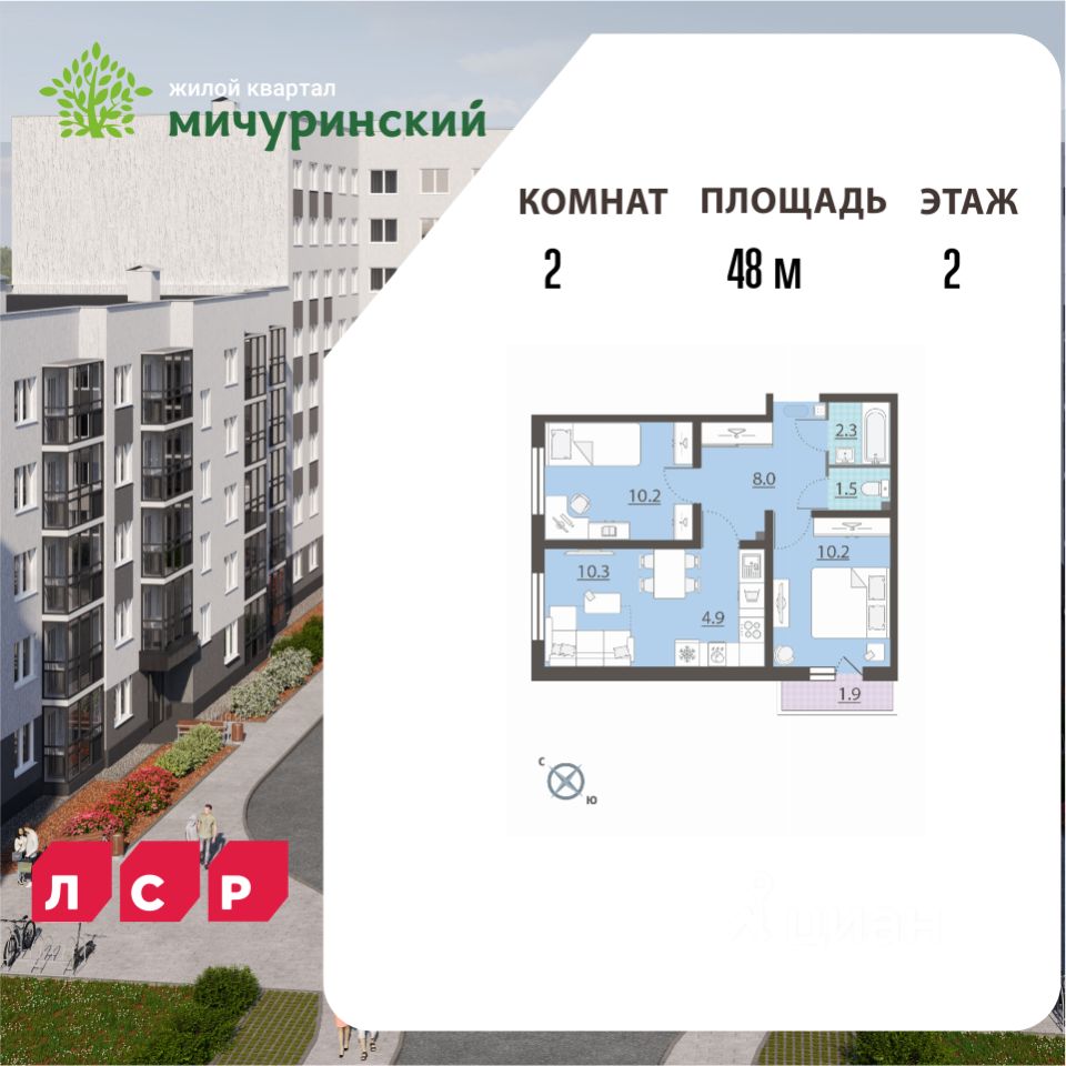 Квартира располагается на 2 этаже 8-этажного дома в ЖК Мичуринский.