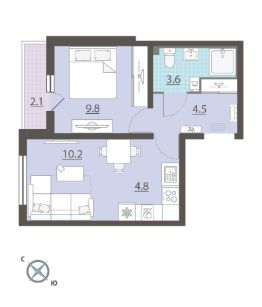 Жилая площадь 20 м2, кухня 4.8 м2, чистовая отделка. Раздельных санузлов - нет, балконов - нет, лоджий - 1.