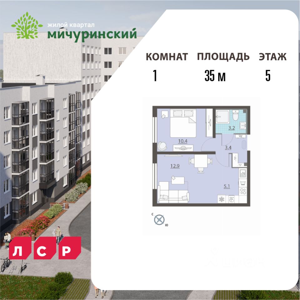 Квартира располагается на 5 этаже 8-этажного дома в ЖК Мичуринский.
