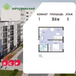 Квартира располагается на 5 этаже 8-этажного дома в ЖК Мичуринский.