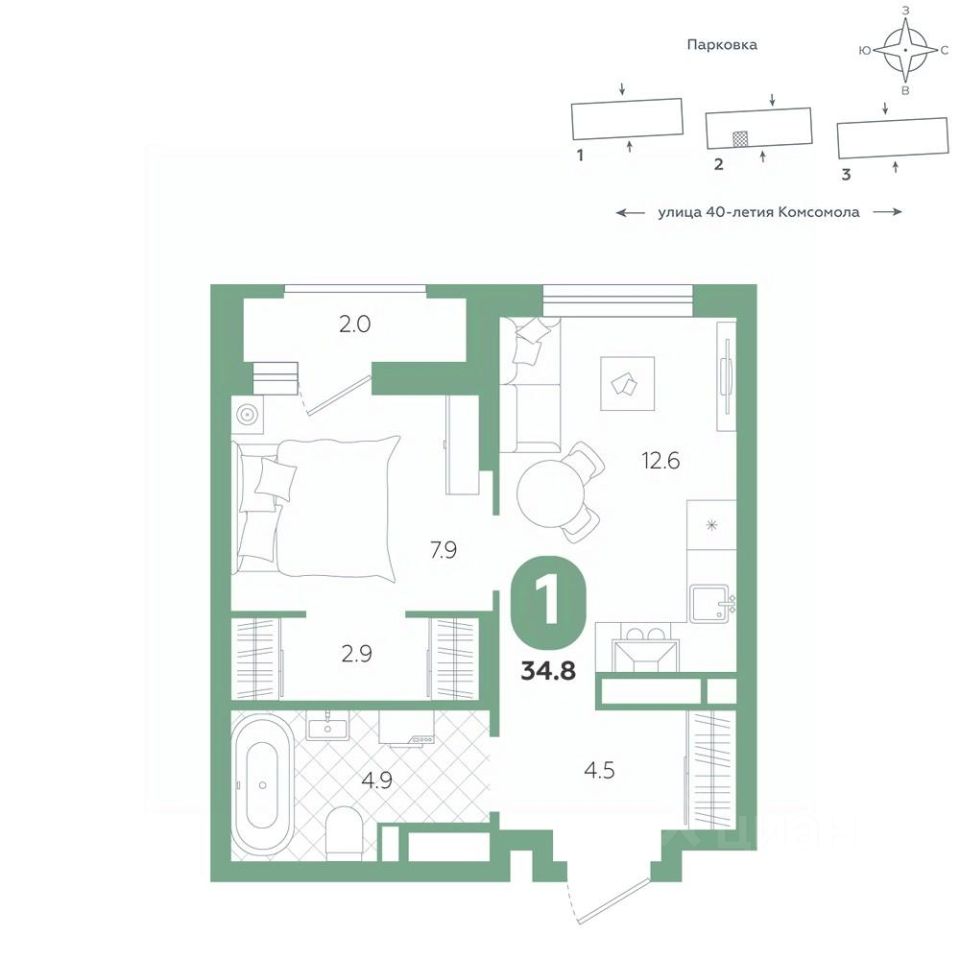 Квартира располагается в ЖК "Комсомольский" — жилом комплексе комфорт-класса. Здесь вы будете наслаждаться беззаботной жизнью, ведь ваш дом — воплощение практичности, безопасности и надежности. Для удобства предусмотрены колясочные на первых этажах домов, где можно оставить велосипеды и коляски в тепле. За безопасность отвечают система электронных ключей и видеонаблюдение. Еще здесь собственная котельная, поэтому в доме всегда будут горячая вода и оплата счетов только за фактически потребленное тепло.