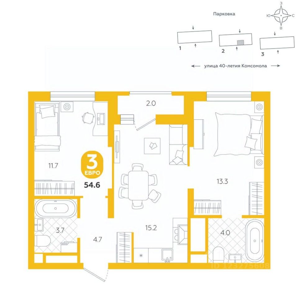 Евроформат объединяет кухню и гостиную в одно просторное помещение, что создает ощущение свободы и открытости пространства. Такая планировка предлагает гибкость в оформлении интерьера, позволяя обустроить зону в соответствии с личными предпочтениями, будь то уютный уголок для чтения или стильная обеденная зона. Идеально для тех, кто стремится к гармонии практичности и эстетики в своем доме. Квартира располагается в ЖК "Комсомольский" — жилом комплексе комфорт-класса. Здесь вы будете наслаждаться беззаботной жизнью, ведь ваш дом — воплощение практичности, безопасности и надежности. Для удобства предусмотрены колясочные на первых этажах домов, где можно оставить велосипеды и коляски в тепле. За безопасность отвечают система электронных ключей и видеонаблюдение. Еще здесь собственная котельная, поэтому в доме всегда будут горячая вода и оплата счетов только за фактически потребленное тепло. ПРЕИМУЩЕСТВА ЖК На этаже 15 квартир Красивые и функциональные парадные с мягкой и стильной зоной для отдыха, книгообменником, встроенными почтовыми ящиками и нишами для сумок Колясочные с доступом по ключу IP-домофоны Тихие лифты с плавным ходом О ПРОЕКТЕ ЖК "Комсомольский" строится в спокойном Кировском районе Екатеринбурга в границах улиц Сыромолотова — Рассветная — 40-лет Комсомола. Комплекс состоит из трех домов переменной этажности, которые выделяются динамичными линиями, выразительными фасадами и стильными лоджиями. ЛОКАЦИЯ Всё, что необходимо для повседневной жизни, находится недалеко от дома: школы, детские сады, продуктовые магазины, фитнес-клубы. Дорога до центра города на машине займет всего 10 минут — достаточно повернуть с улицы 40-летия Комсомола на улицу Владимира Высоцкого. Рядом с этим перекрестком начинается "Тропа здоровья" — большой терренкур вдоль "Каменных палаток". 10 мин до центра 3-4 минуты до школы No 82, гимназии No 176 4-5 минут до детских садов No 208, No 583, 266 20 мин до Свердловского областного медицинского колледжа и Центральной городской больницы No 7 В рамках стратегического развития района на первых этажах домов появятся коммерческие помещения, в которых откроются магазины и кафе. Следует учесть, что к 2030 году в Кировском районе планируется формирование регионального рекреационно-оздоровительного кластера, строительство ветки метро, расширение и модернизация старых промышленных зон социальной и бизнес-инфраструктуры, что приведет к созданию комфортной среды для жизни. Кроме того, в стратегию входит развитие Шарташского лесного парка как центра регионального и международного туризма. СПОСОБЫ ПОКУПКИ Ипотека: подберем выгодные условия в нескольких банках, чтобы вы могли выбрать лучшее Материнской капитал: можно использовать в качестве первоначального взноса Рассрочка: платите частями без % Сертификаты: позволяют оплатить часть стоимости квартиры О КОМПАНИИ "Паритет Девелопмент" — это современный и ответственный подход к реализации проектов в сфере жилищного строительства. Компания формирует сре