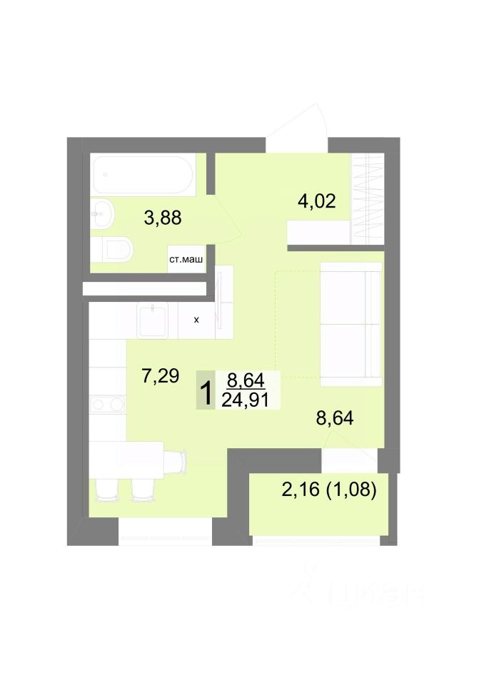 Продаётся студия в строящемся доме (Дом 1В), срок сдачи: III-кв. 2026, общей площадью 24.91 кв.м., на 9 этаже. с Квартал расположен между двумя микрорайонами - Академический и Широкая речка на пересечении улиц Тенистая-Краснолесья-Соболева. Вы сможете пользоваться преимуществами сразу двух районов! 30 минут до центра города на машине, 9 минут до Объездной дороги, если хочется выехать на природу. В шаговой доступности есть несколько школ, детских садов и спортивных секций. А еще один детский сад на 350 мест уже построен на территории самого квартала. Большой двор, разделен на рекреационные зоны. Есть площадки для малышей и подростков с безопасным покрытием, зоны ворк-аута для предпочитающих здоровый образ жизни, прогулочные дорожки для бесед с друзьями или соседями. Безопасность - важное преимущество эко-квартала. Вход на территорию осуществляется с помощью Face ID или через мобильное приложение. Входные группы оформлены в соответствии с архитектурной концепцией всего квартала, ведь всегда приятно заходить в красиво оформленный подъезд. На всех этажах предусмотрена навигационная система, чтобы ваши гости точно не заблудились! В третьей очереди квартала "На Тенистой" есть несколько уникальных планировок, в том числе с мастер-спальнями, с открытыми балконами, с панорамным остеклением лоджии. А чтобы вы точно подобрали то, что по душе, в продаже представлены все виды комнатности - от студий до трехкомнатных. Мы за быстрый переезд, поэтому все квартиры сдаются с отделкой "под ключ": поклеены обои под покраску, постелен ламинат, установлены окна, обустроен санузел, поставлены счетчики, проведена разводка. До встречи на Тенистой. Здесь всегда хорошо! Окончание строительства: III квартал 2026г.