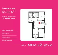 2-комн. квартира от застройщика с отделкой в ЖК "Милый дом" на 17 этаже. Общая площадь: 65.82 кв.м., жилая: 21.9 кв.м., площадь просторной кухни-столовой: 25.3 кв.м. Угловая квартира, очень светлая, естественная вентиляция при открытии окон. В квартире одна лоджия, два совмещенных санузла. Высота потолков 2.72 м.