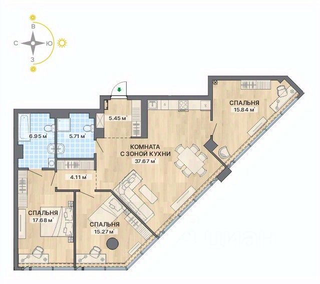 На выбор покупателей — апартаменты площадью от 48,5 до 131 м², в том числе свободной планировки. Из окон открываются панорамные виды на Екатеринбург-Сити и набережную Городского пруда.