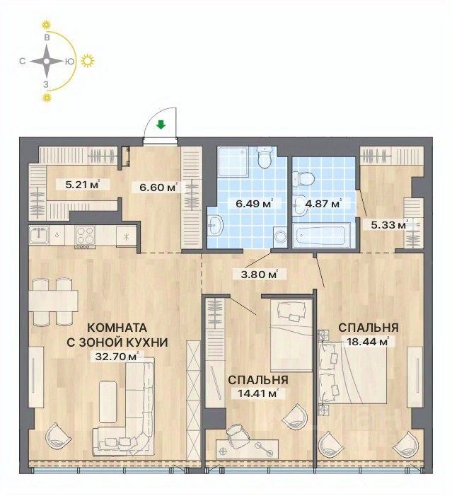 На выбор покупателей — апартаменты площадью от 48,5 до 131 м², в том числе свободной планировки. Из окон открываются панорамные виды на Екатеринбург-Сити и набережную Городского пруда.