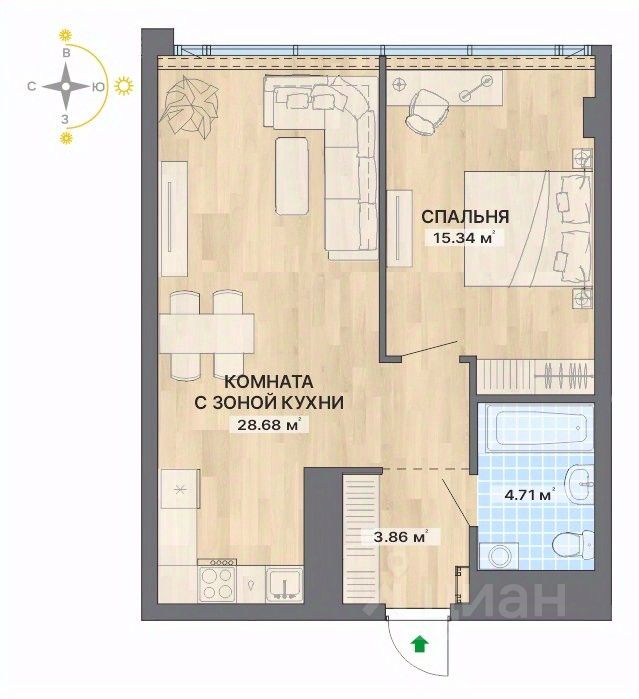 На выбор покупателей — апартаменты площадью от 48,5 до 131 м², в том числе свободной планировки. Из окон открываются панорамные виды на Екатеринбург-Сити и набережную Городского пруда.