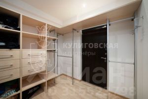 - Просторная гардеробная в комнате обеспечивает достаточное место для хранения вещей, освобождая пространство от лишних шкафов и создавая ощущение простора.