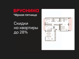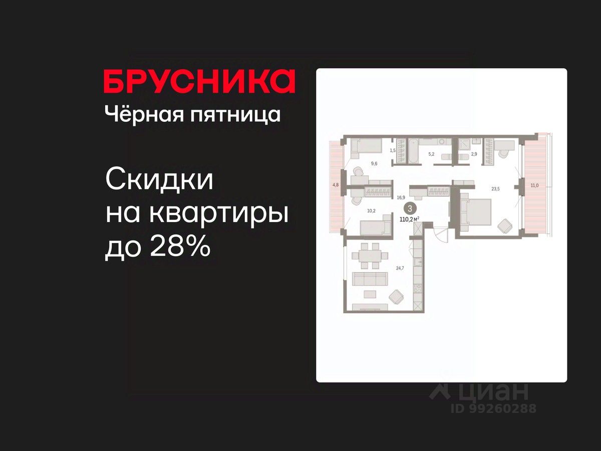 Квартира с кухней-гостиной и тремя спальнями в Бруснике в Академическом. Особенности планировки: окна на две стороны, гардеробная, вид во двор, разнесённые спальни, предчистовая отделка, мастер-спальня, балкон, терраса на крыше.