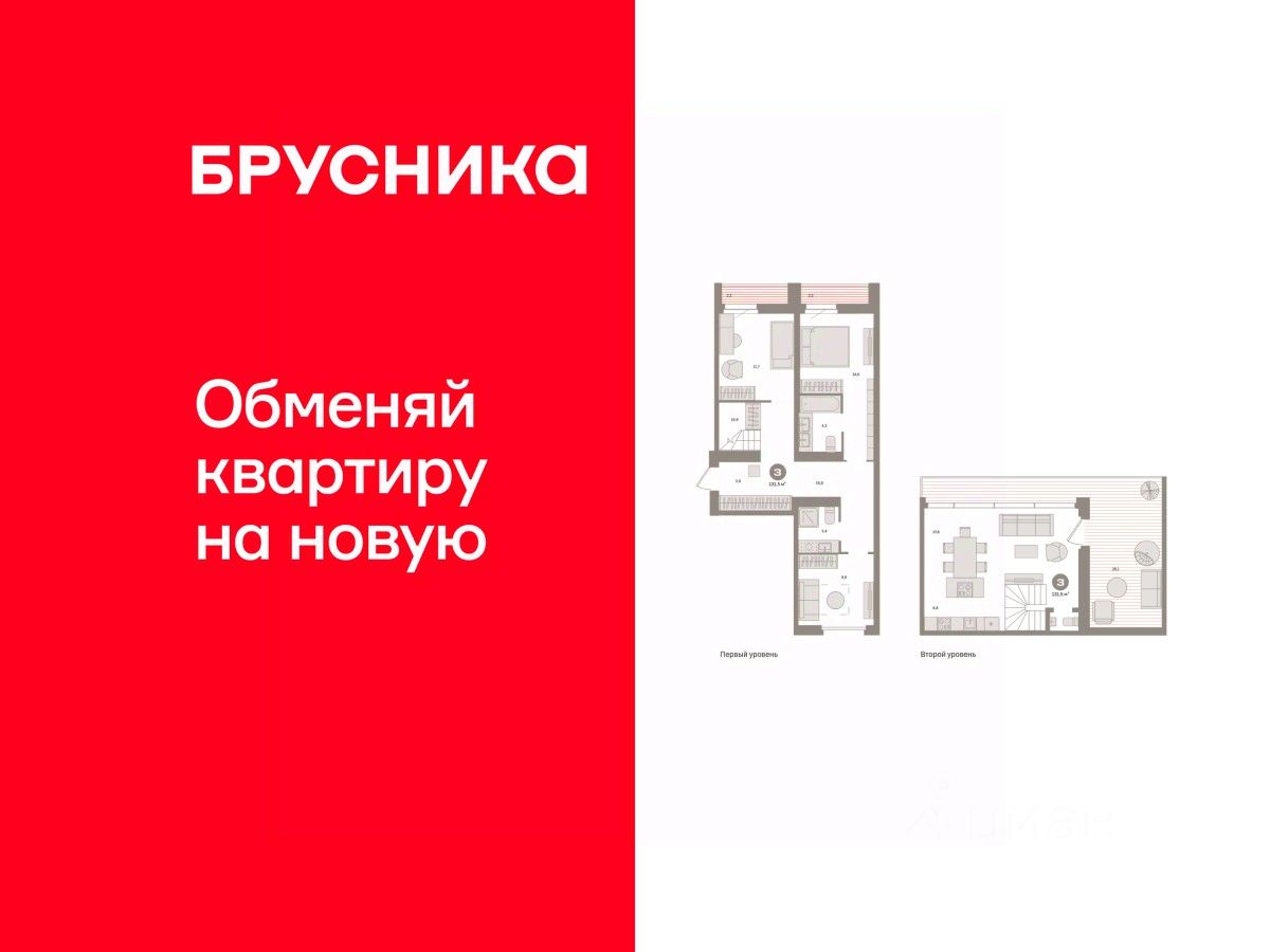 Квартира с кухней-гостиной и тремя спальнями в Южных кварталах. Особенности планировки: вид во двор, летняя кухня на крыше, лоджия, мастер-спальня, окна на две стороны, предчистовая отделка, разнесённые спальни, терраса на крыше.