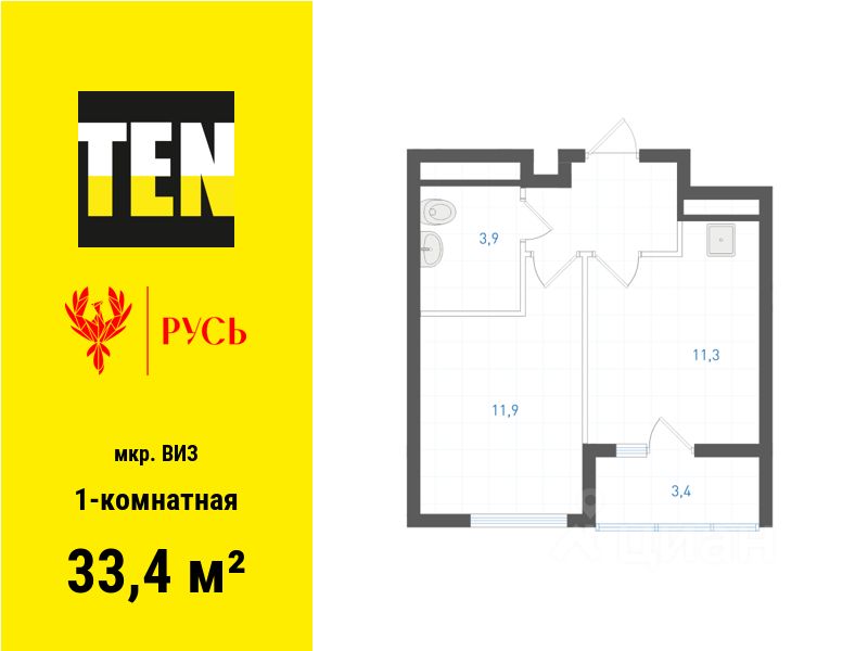 Общая площадь33,4 м²