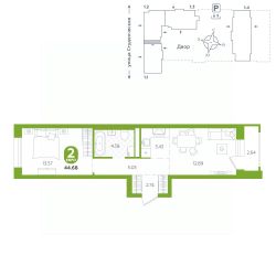 площадь квартиры - 44,68 кв.м