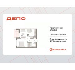 Квартира с кухней-гостиной и одной спальней в квартале "Депо". Особенности планировки: балкон, предчистовая отделка.