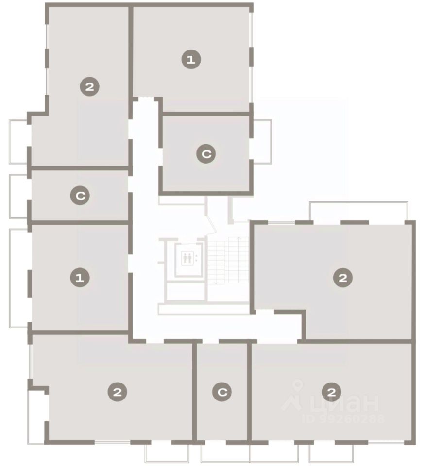 Квартира с кухней-гостиной и двумя спальнями в квартале "Депо". Особенности планировки: вид во двор, предчистовая отделка, постирочная, балкон.