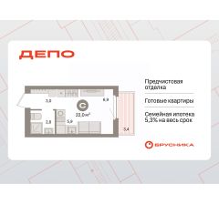 Студия в квартале "Депо". Особенности планировки: предчистовая отделка, балкон.