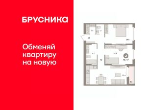 Квартира с кухней-гостиной и двумя спальнями в квартале "Депо". Особенности планировки: предчистовая отделка.