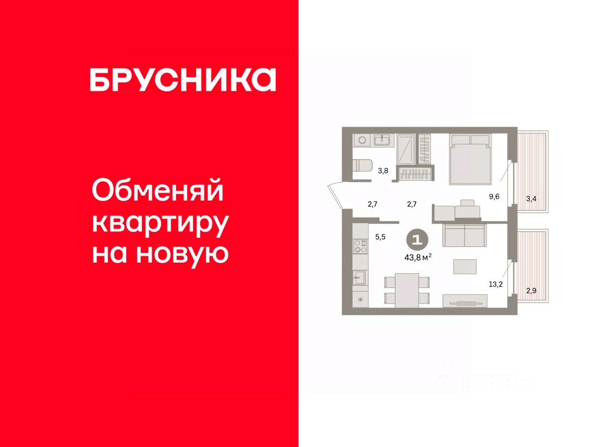 Квартира с кухней-гостиной и одной спальней в квартале "Депо". Особенности планировки: балкон, предчистовая отделка.