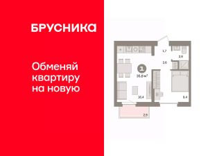 Квартира с кухней-гостиной и одной спальней в квартале "Депо". Особенности планировки: балкон, предчистовая отделка.