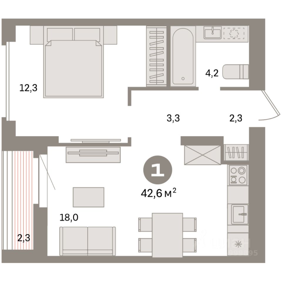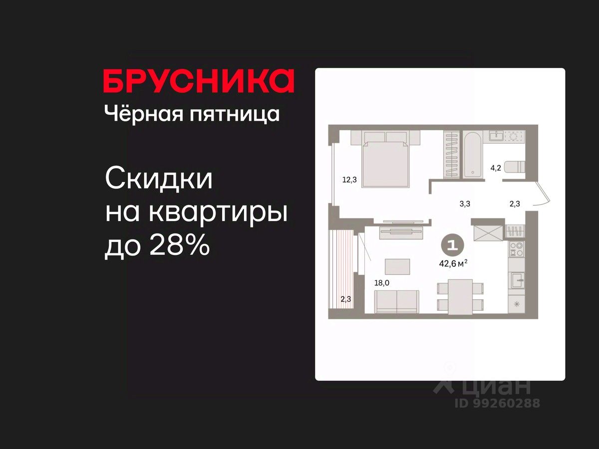 Квартира с кухней-гостиной и одной спальней в квартале "Депо". Особенности планировки: лоджия, предчистовая отделка.