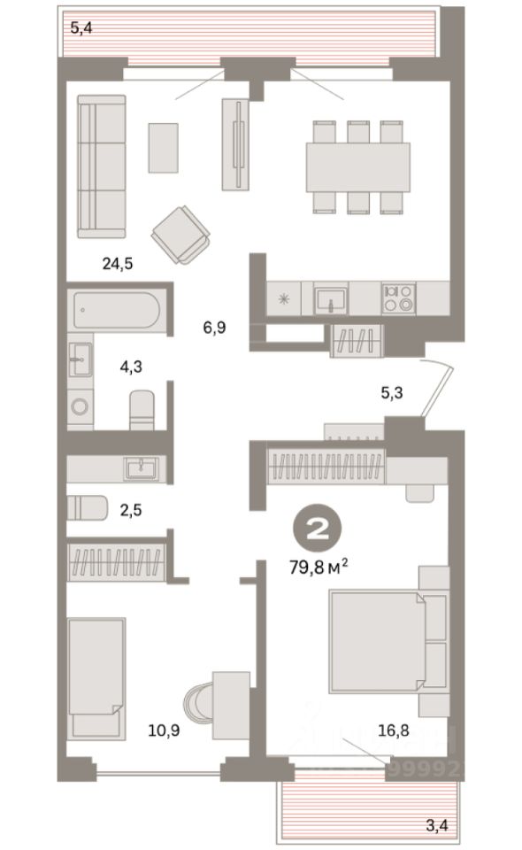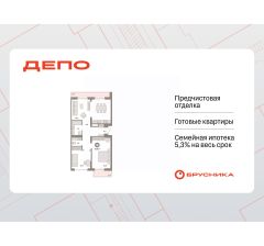 Квартира с кухней-гостиной и двумя спальнями в квартале "Депо". Особенности планировки: окна на две стороны, второй санузел, вид во двор, предчистовая отделка, балкон, терраса на крыше.