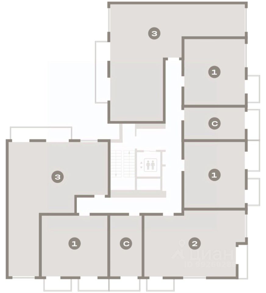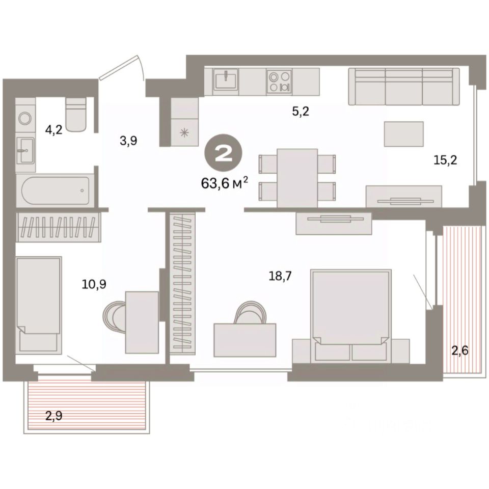Квартира с кухней-гостиной и двумя спальнями в квартале "Депо". Особенности планировки: лоджия, предчистовая отделка, балкон.