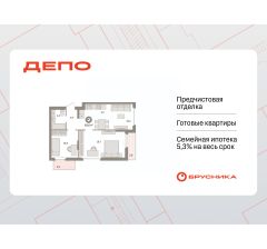 Квартира с кухней-гостиной и двумя спальнями в квартале "Депо". Особенности планировки: предчистовая отделка.