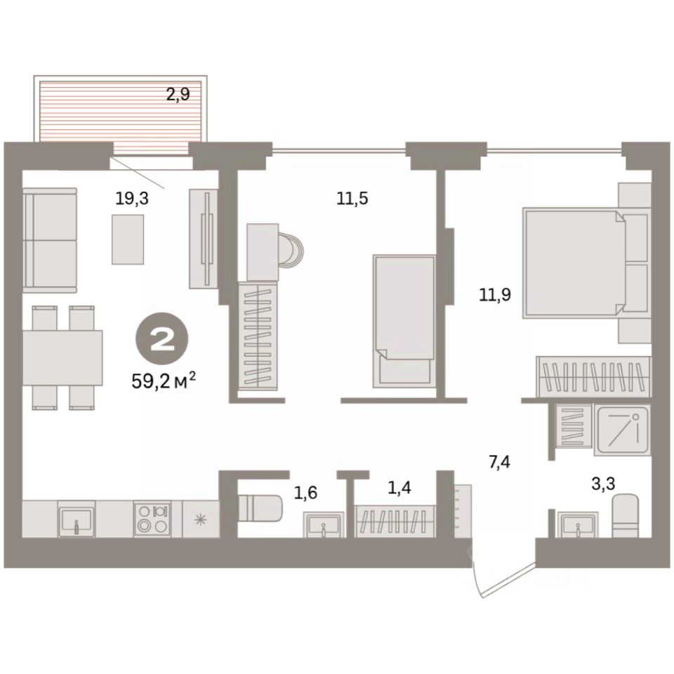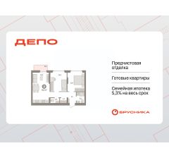Квартира с кухней-гостиной и двумя спальнями в квартале "Депо". Особенности планировки: второй санузел, гардеробная, предчистовая отделка, балкон.