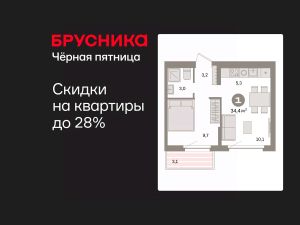 Квартира с кухней-гостиной и одной спальней в квартале "Депо". Особенности планировки: предчистовая отделка, балкон.