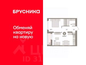 Квартира с кухней-гостиной и одной спальней в квартале "Депо". Особенности планировки: предчистовая отделка.