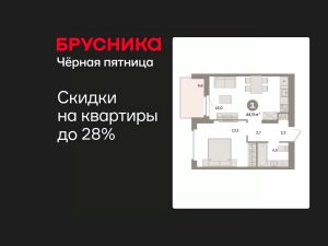Квартира с кухней-гостиной и одной спальней в квартале "Депо". Особенности планировки: предчистовая отделка, балкон.