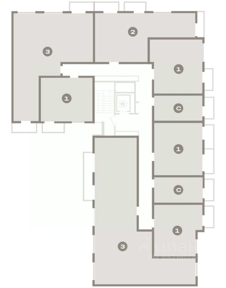 Квартира с кухней-гостиной и двумя спальнями в квартале "Депо". Особенности планировки: разнесённые спальни, предчистовая отделка, балкон.