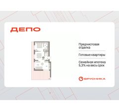 Квартира с кухней-гостиной и одной спальней в квартале "Депо". Особенности планировки: гардеробная, предчистовая отделка, мастер-спальня, постирочная, терраса на крыше.