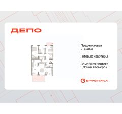 Квартира с кухней-гостиной и тремя спальнями в квартале "Депо". Особенности планировки: окна на две стороны, второй санузел, гардеробная, окна в пол, рабочий кабинет, вид во двор, панорамное остекление, предчистовая отделка, мастер-спальня, терраса, постирочная, балкон.